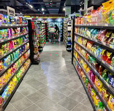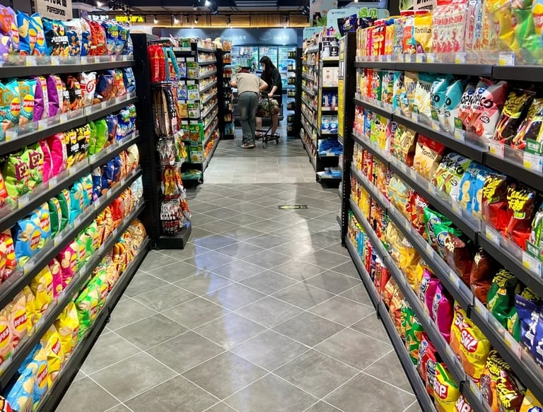 货架结实耐用,安装方便,极大提升了超市的展示效果。